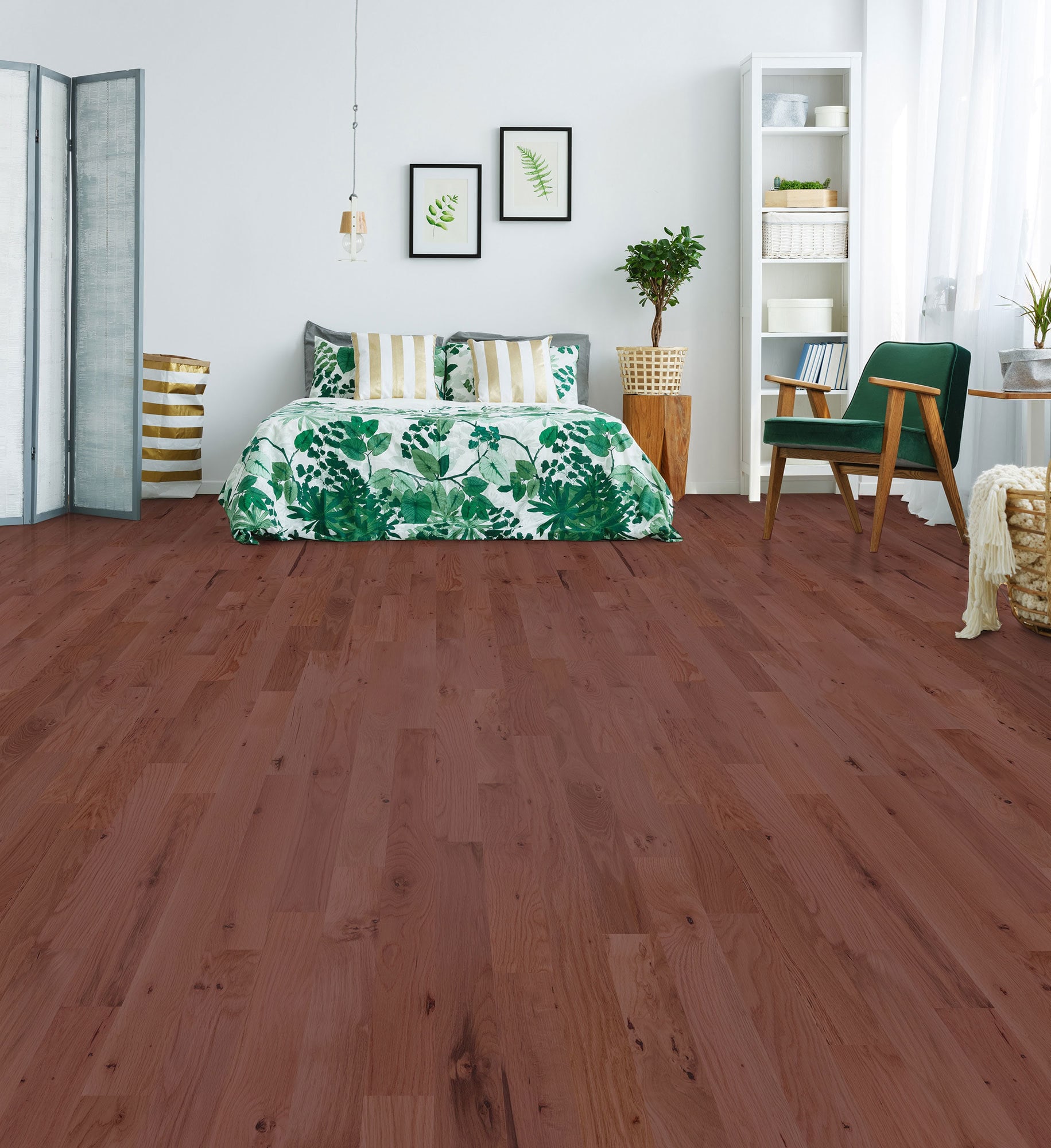 Floors mimic maple, cherry, oak, walnut, and other wood.