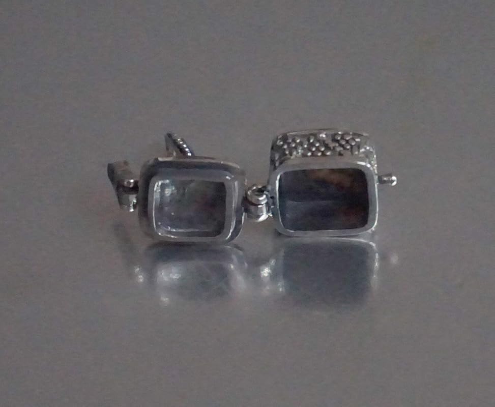 Silver secret stash cylinder necklace with square cubic zirconia cz.